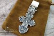 Изображено на кресте: Распятие Христово с предстоящими. Святая Троица. Архангел Михаил. Святые Воины. Тихвинская икона Божией Матери. Православный крест.Высота: 8 мм